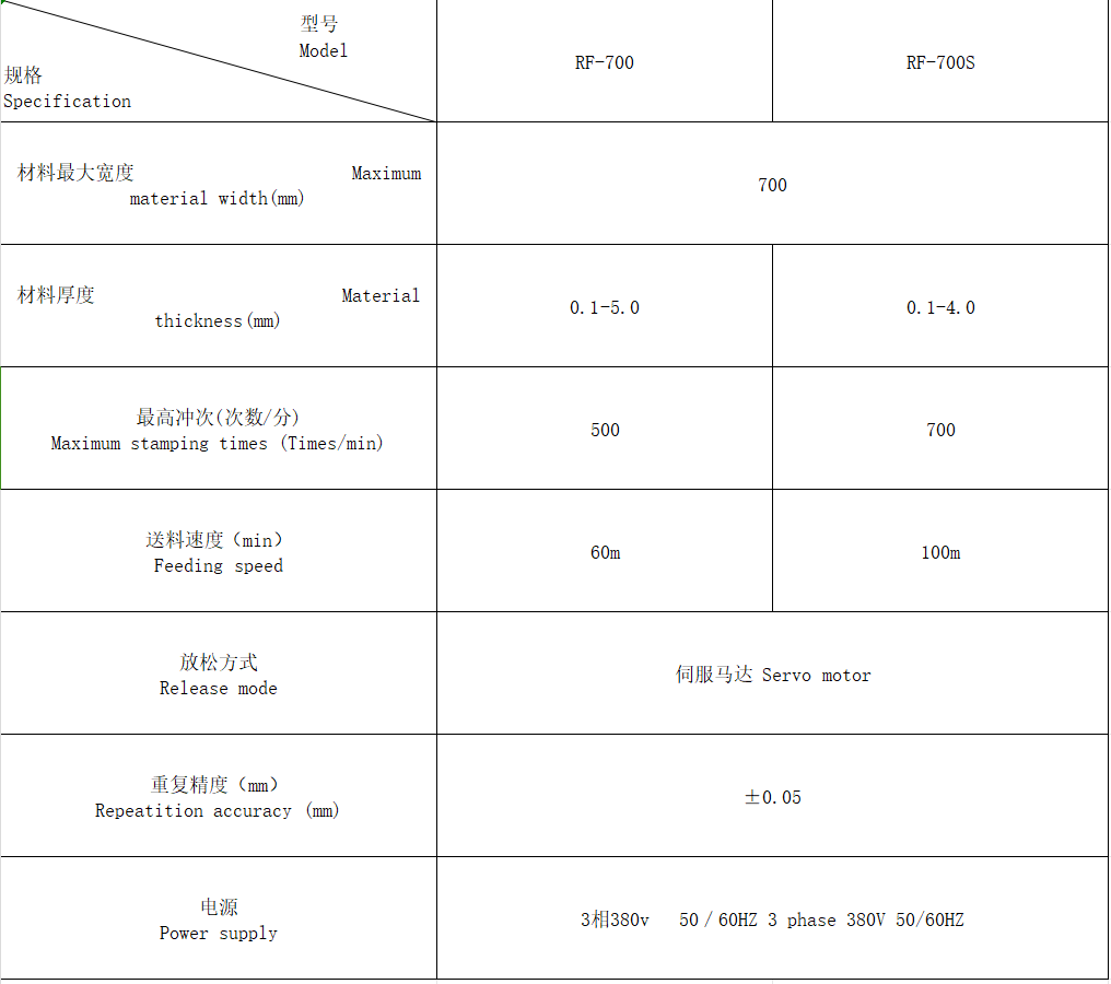 高速、精准、稳定:送料段数高达700spm/min,送料速度高达100m/min,重复公差±0.05mm内,采用日本进口电机及自主研发高性能控制系统,稳定性高。
